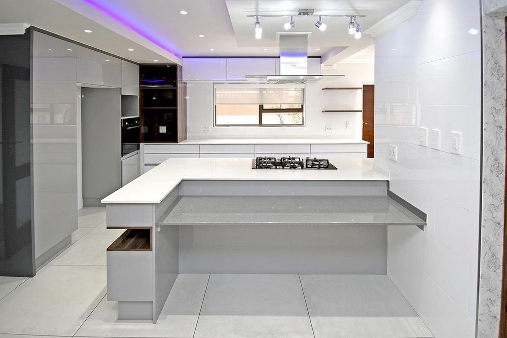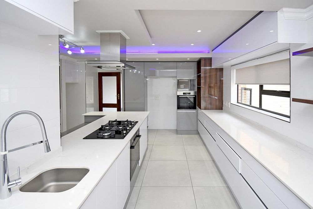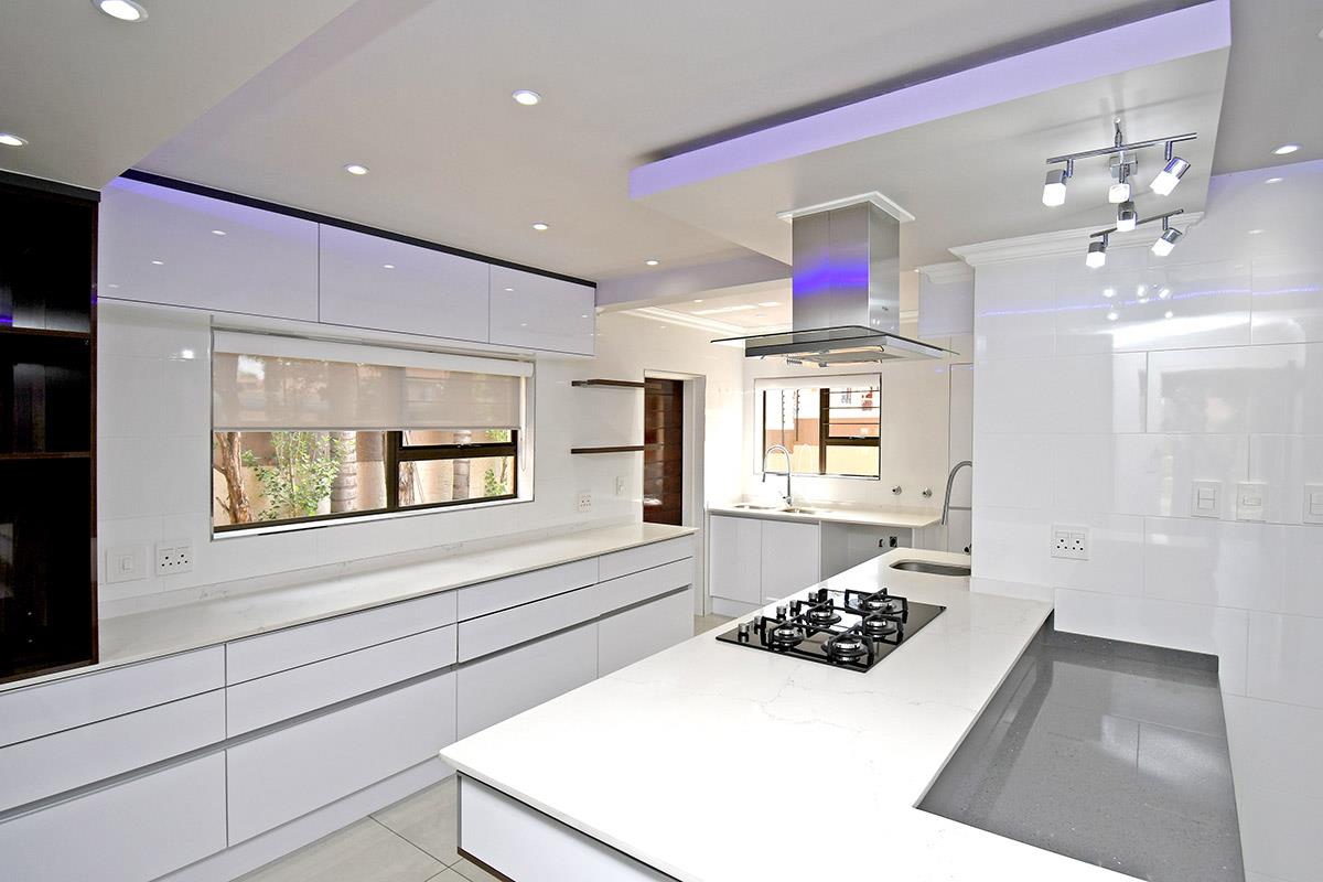 the kitchen is exquisite and large with quarts counter top and breakfast counter. It has a 5 gas burner stove and 2 ovens, and coloured downlights for that special ambiance.