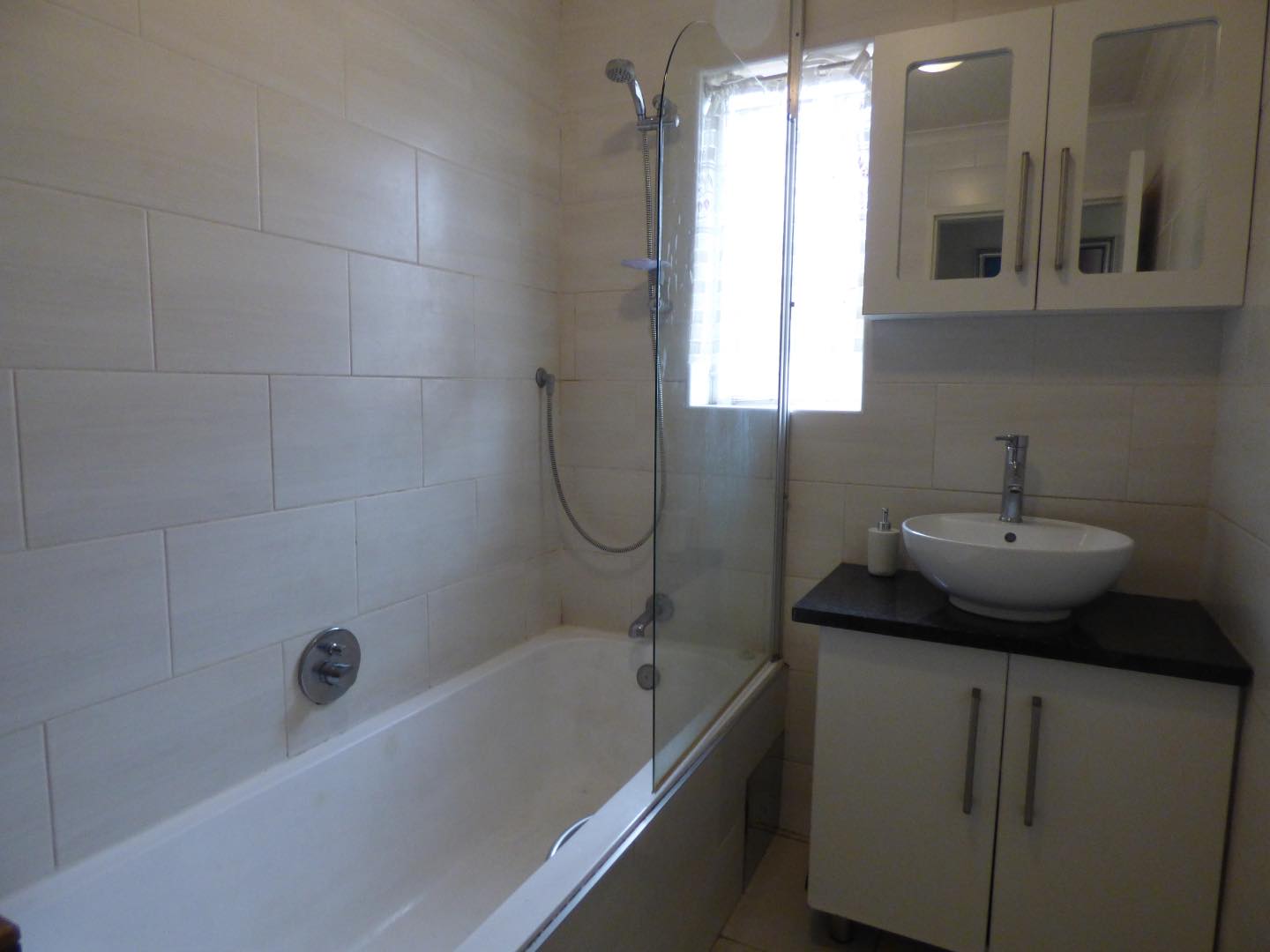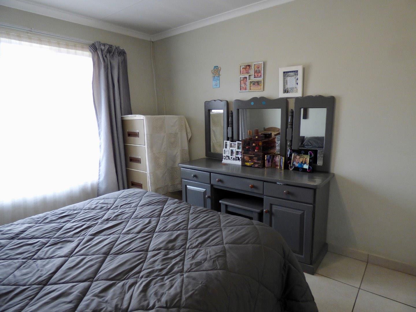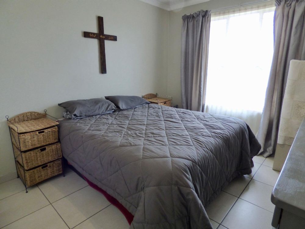 This very neat north facing unit is sunny, spacious and secure. It is fully tiled and offers a stunning open plan kitchen with allowances for two under counter appliances. Spacious lounge onto small patio. There are three bedrooms with built-in cupboards, each large enough to accommodate a double bed. One modern fully tiled bathroom with an over bath shower, and separate toilet.