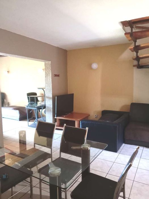 This charming home offers two spacious bedrooms and a well-appointed bathroom. The layout includes two versatile living areas, perfect for relaxing or entertaining. One of the living rooms features an open plan design that seamlessly flows into the dining area, providing a welcoming space for family gatherings and meals.