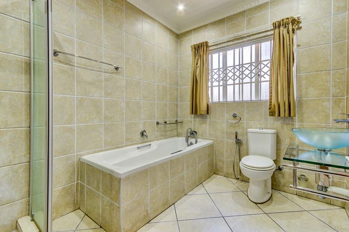 Four-bedroom, three-bathroom cluster home on 984m² with two garages in Birchwood Crescent estate. Floor size: 277 m².