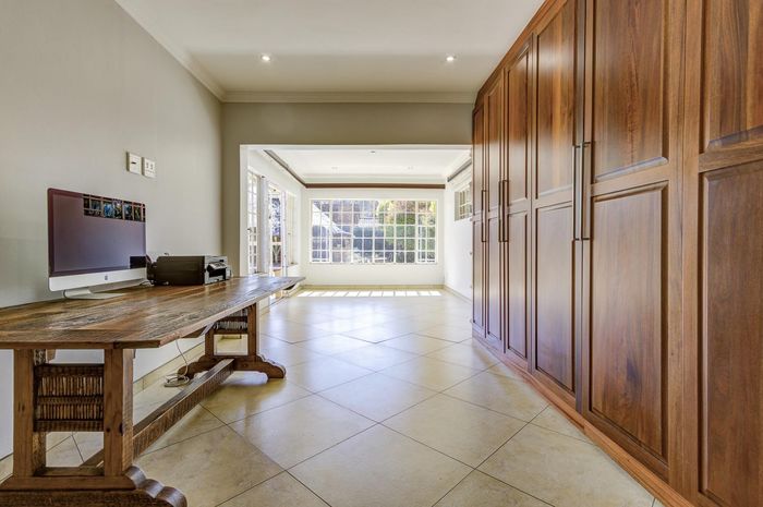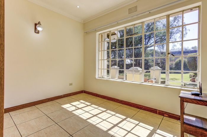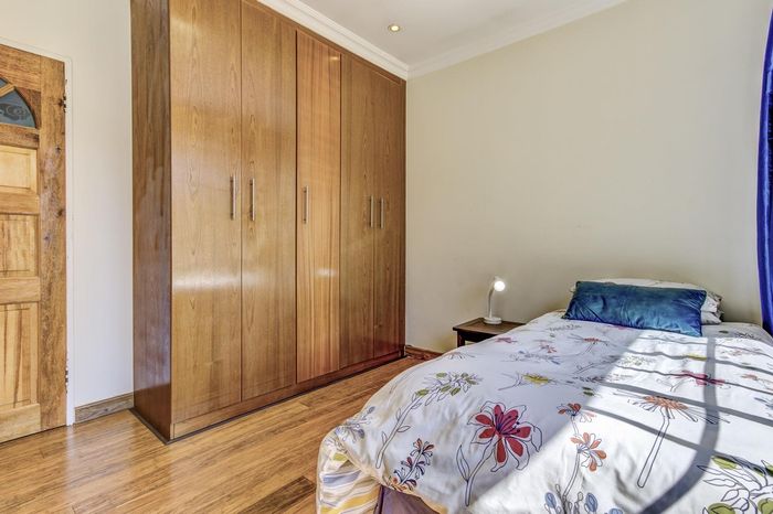 Private suburban retreat with a large level garden, high security (CCTV, electric fence, armed response), open-plan living and kitchen, plus three garages and three bedrooms.