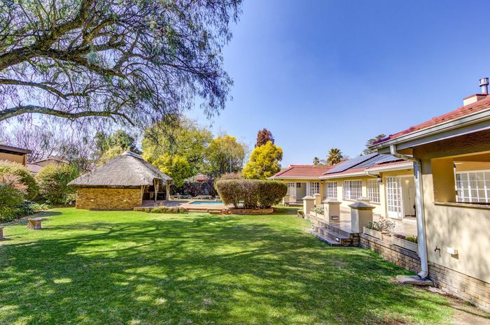 Country retreat between Johannesburg and Pretoria, minutes from the R21, offering rural privacy with two family homes and a 3-bedroom log cabin plus rooftop solar.