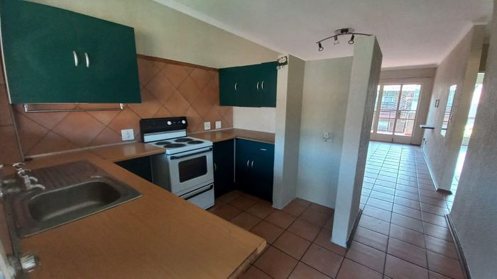 Enjoy convenient, secure suburban living steps from East Rand Mall and Witdeep Primary School, with open-plan lounge and children's playgrounds — two beds, one bath, covered parking.