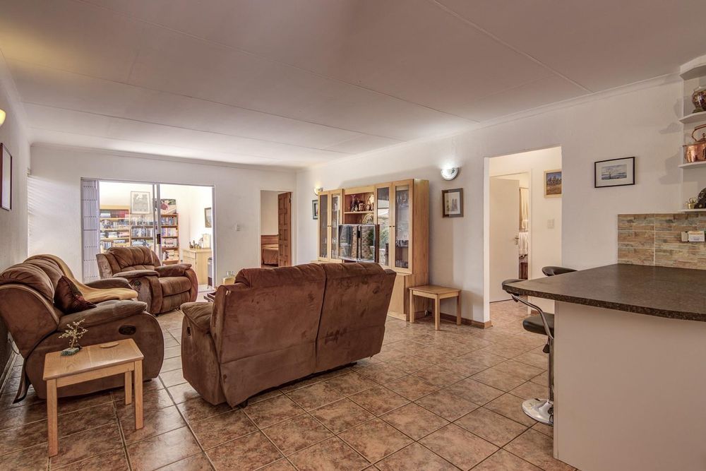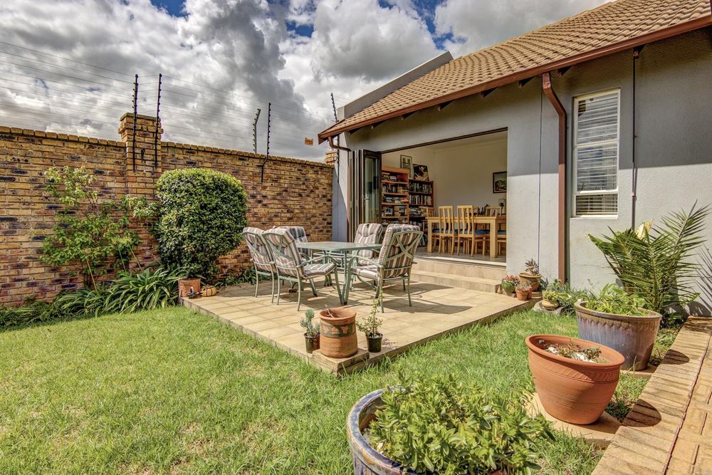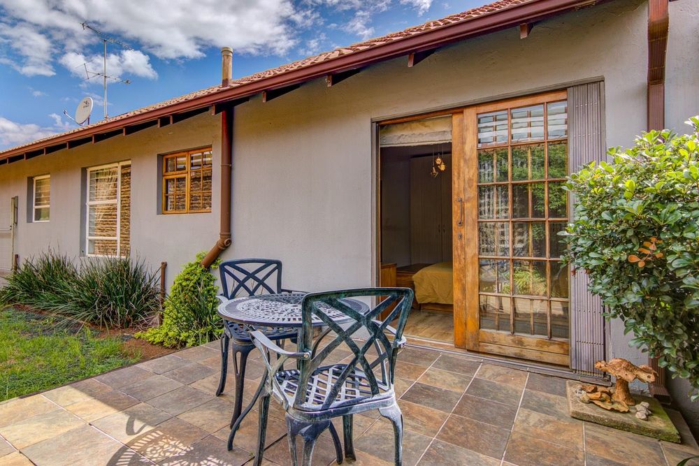 Aluminium stacker doors extend from the dining room onto a sunny patio overlooking the front garden. A built-in braai sets the scene for relaxed summer days...
