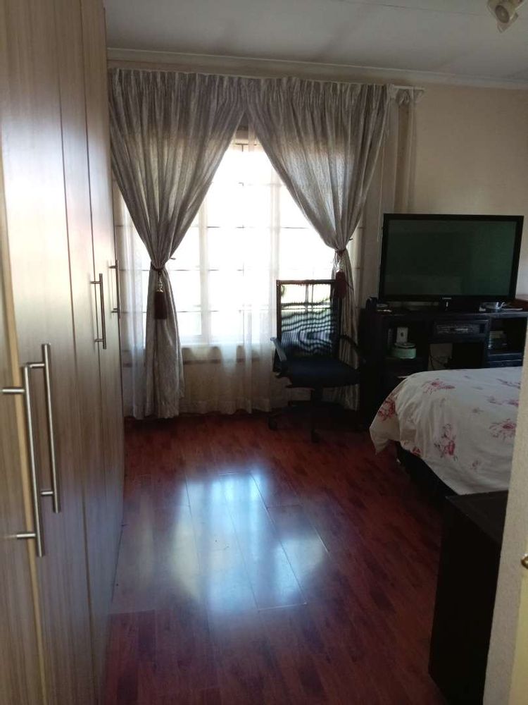 The property boasts three well-appointed bedrooms, each equipped with built-in cupboards. The main bedroom is generously sized and includes an ensuite bathroom complete with a shower, basin, toilet, and bath—offering a private sanctuary for relaxation. The second bathroom is conveniently equipped with a bath, basin, and toilet to cater to the needs of the entire family.