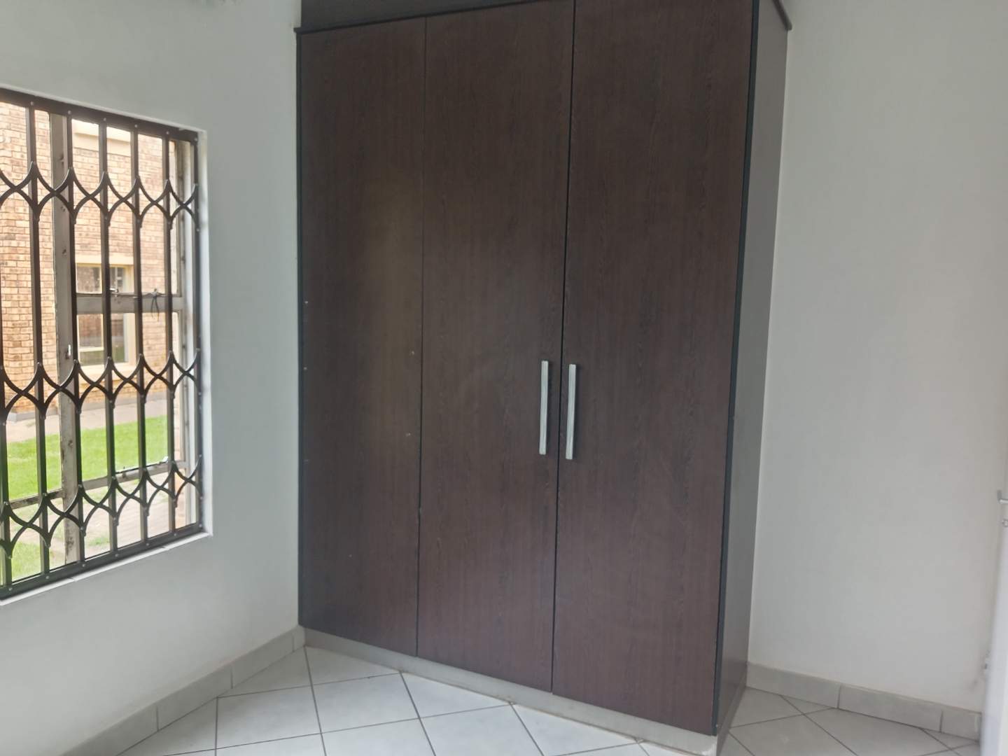 The townhouse boasts two cozy bedrooms, each with built-in cupboards, providing ample storage space. The bathroom is thoughtfully designed with a toilet, basin, and a convenient shower over the bath. Additional benefits include prepaid electricity, offering both convenience and control over your utility costs.