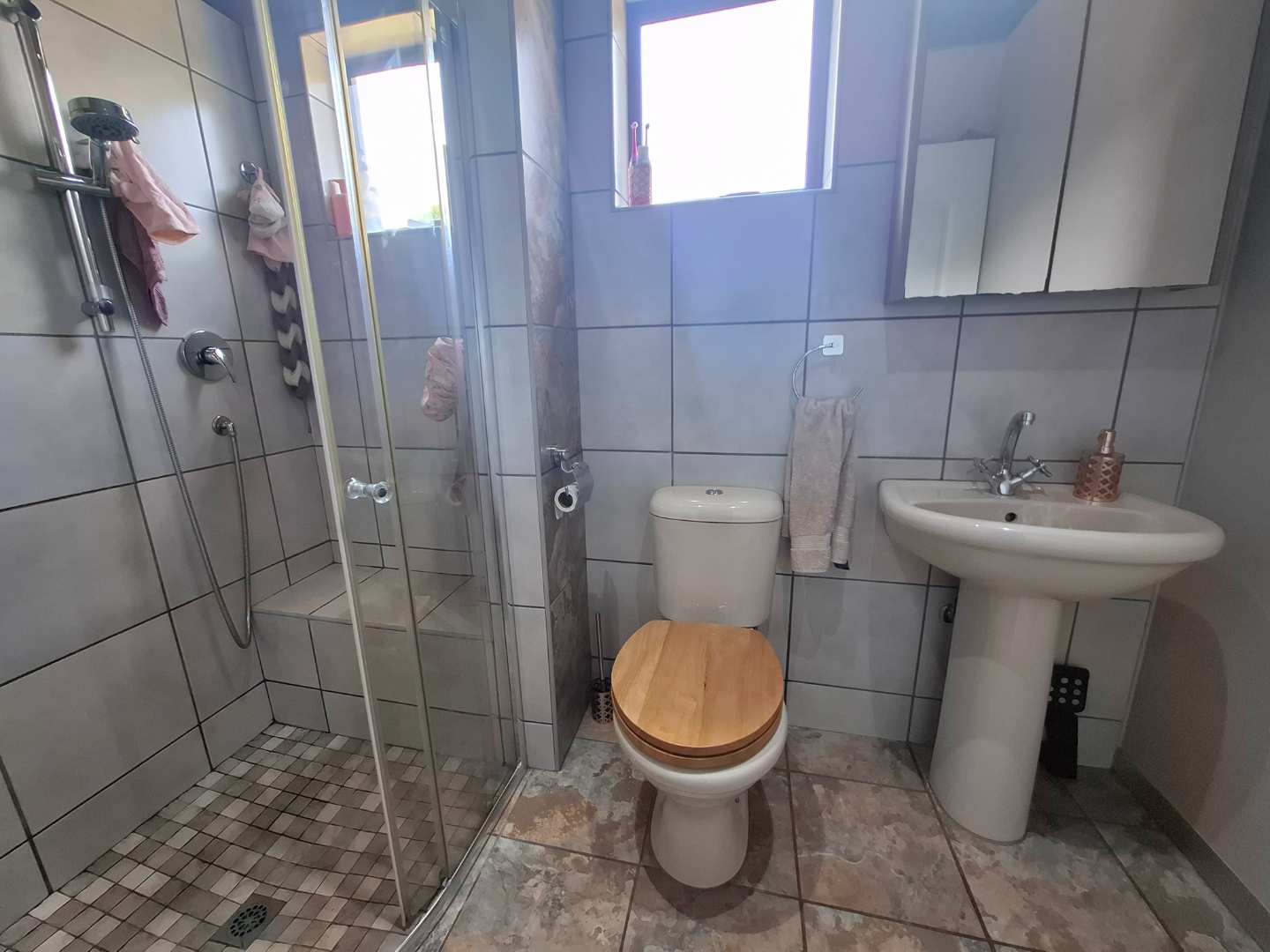 The main house boasts a generous living area with direct access to a double automated garage. The lovely kitchen is perfect for entertaining friends and family on the enclosed patio. Additionally, a mezzanine floor provides an ideal space for a home office. The house includes three bedrooms, two of which are en-suite, along with an additional bathroom.