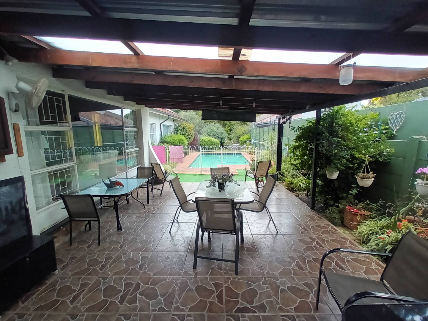 There is also a covered and tiled patio that faces onto the pool.