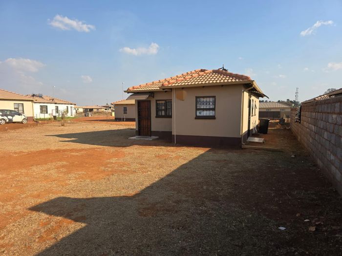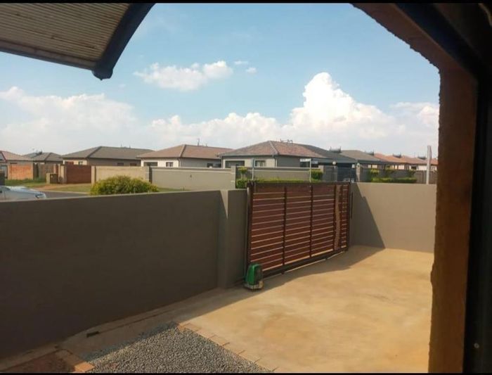 Gated property with 2 bedrooms, bathroom, open plan living, braai area, and double carport. Ideal for first-time buyers.
