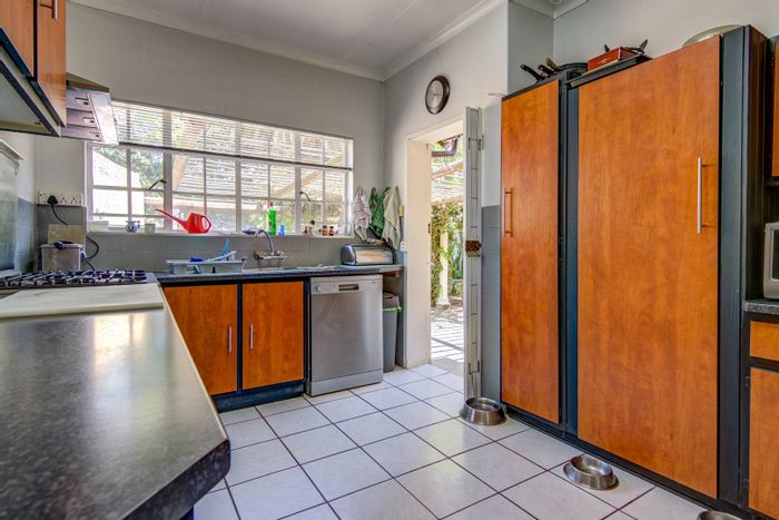 Effortless family entertaining around a rock pool and covered braai patio in a peaceful suburban plot, with an expansive open-plan kitchen, four bedrooms and three bathrooms.