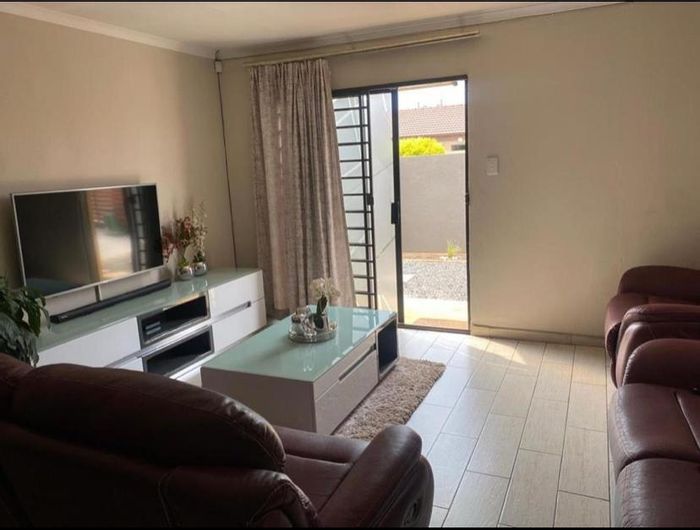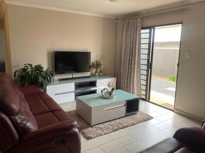 Peaceful Sunrock Village living in Klippoortje with 24-hour security, a well-kept private garden and open-plan kitchen/lounge; main en-suite plus three bedrooms and two bathrooms.