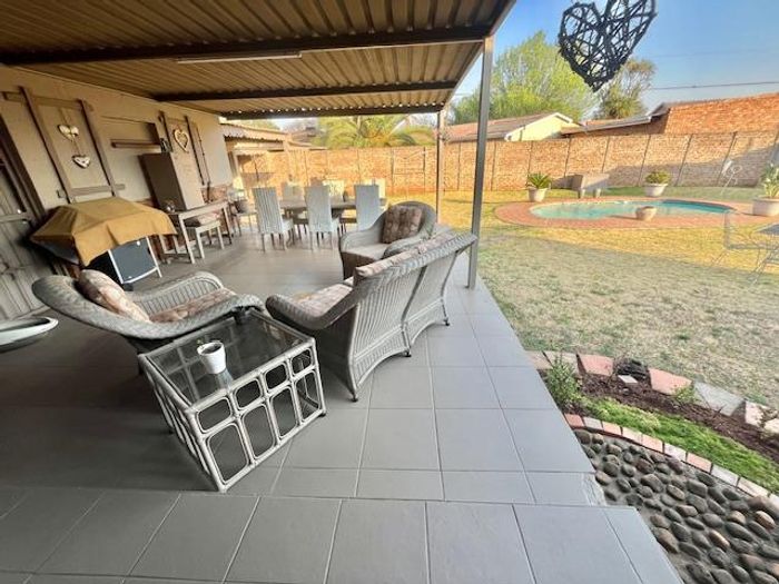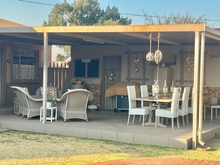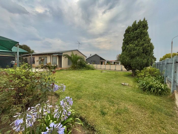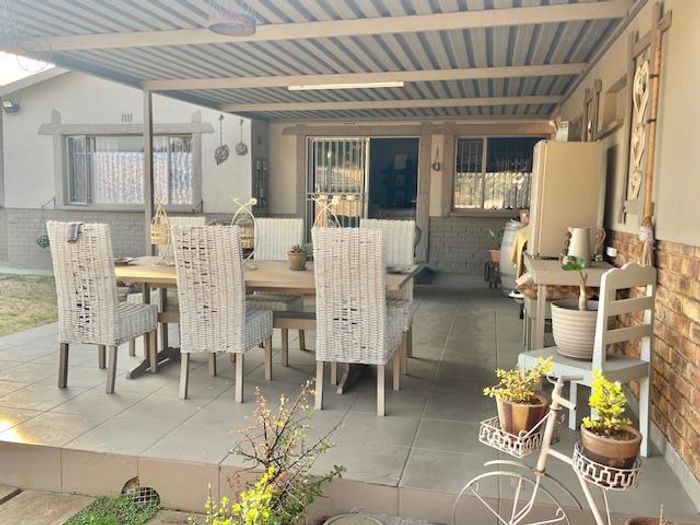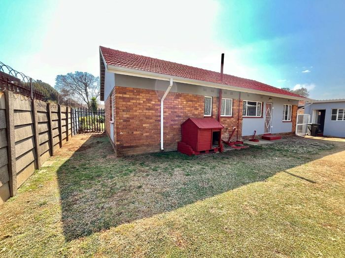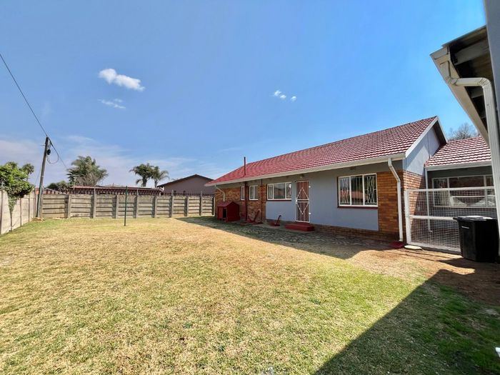 Family-friendly suburban living in established Van Dyk Park, Boksburg — enjoy a generous 945 sqm garden with mature shade tree and covered patio, plus three bedrooms, two bathrooms and double garage.