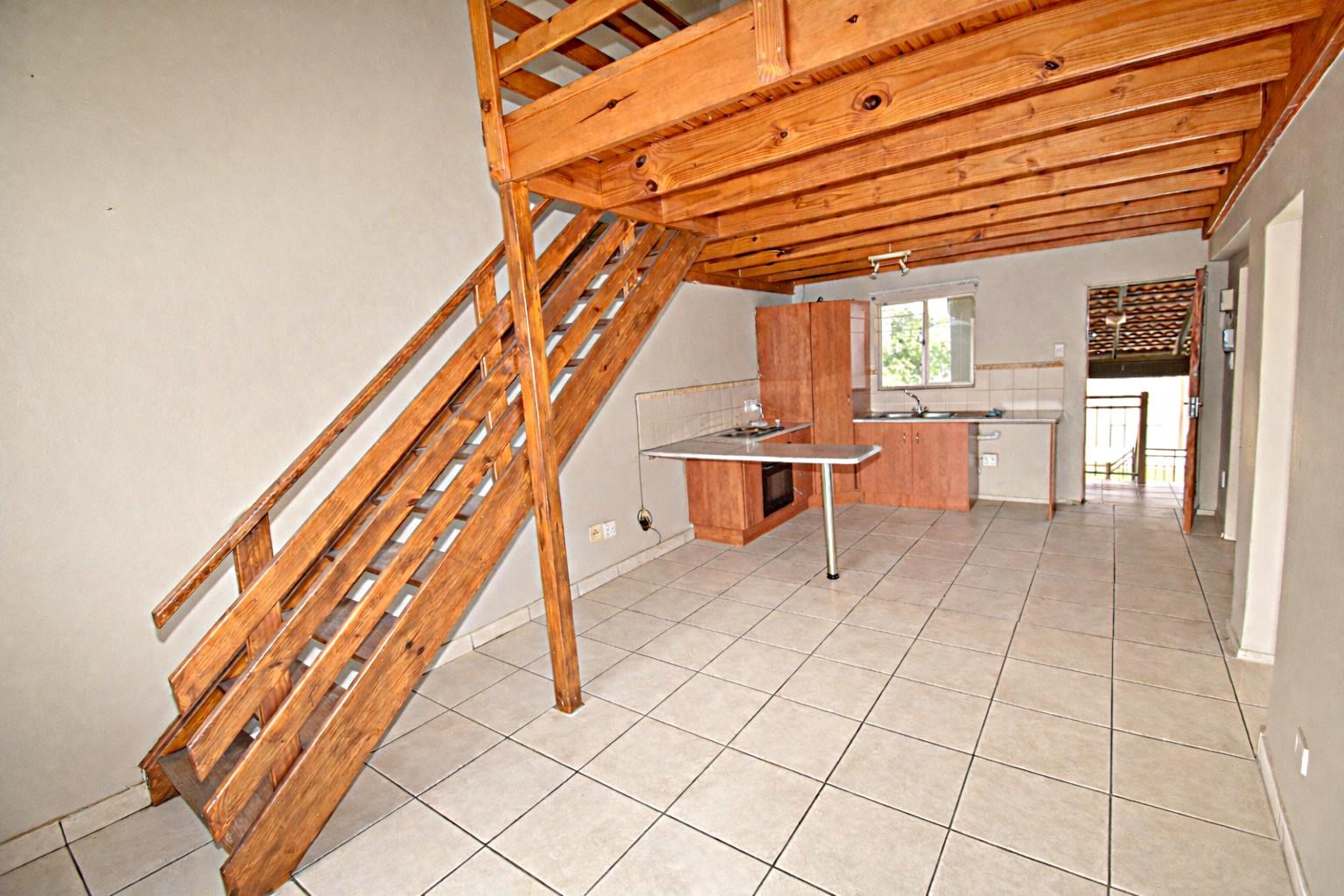 This second floor unit has 2 bedrooms with tiled floors and built in cupboards, a single modern bathroom and an open plan lounge and kitchen