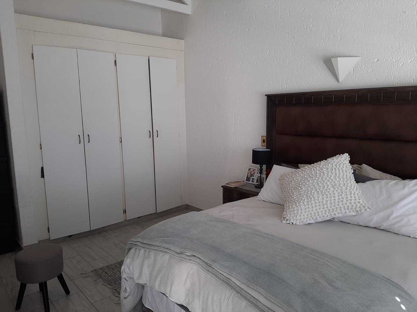 The modern kitchen is equipped with sleek finishes off high-quality, making it a delight for both cooking enthusiasts and those who enjoy entertaining. The lounge seamlessly extends to a large patio, featuring a built-in braai, ideal for hosting gatherings and enjoying outdoor meals with family and friends.