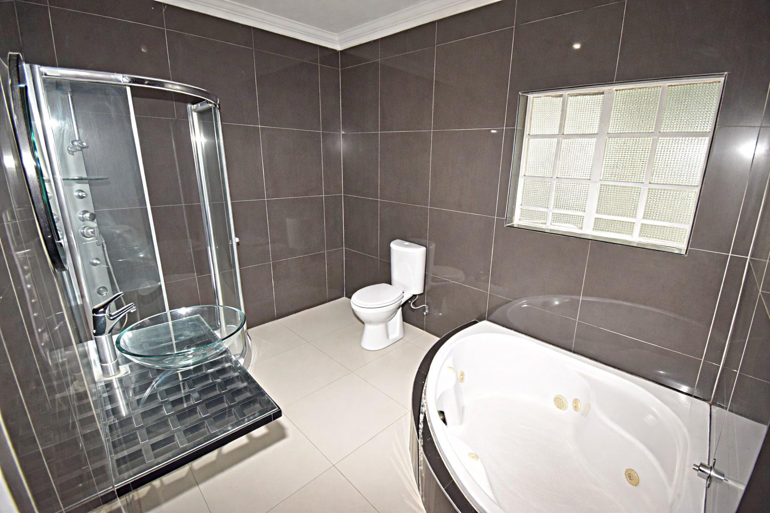 At the heart of the home is a large open-plan kitchen fitted with granite countertops, complemented by a separate scullery with space for both a dishwasher and washing machines, keeping your living areas neat and organized. The property also boasts three spacious living areas, including a dining room, a comfortable lounge, and a welcoming family room.