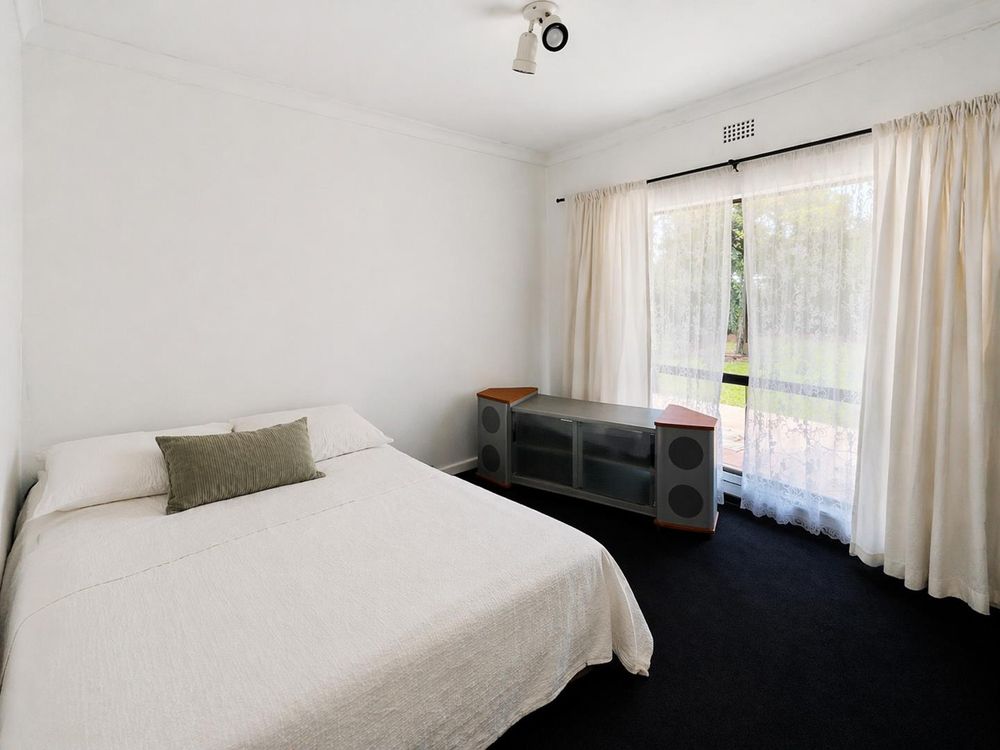 There is a large study with tiled floors and stack doors opening onto the backyard. Aluminium windows are fitted with blinds.