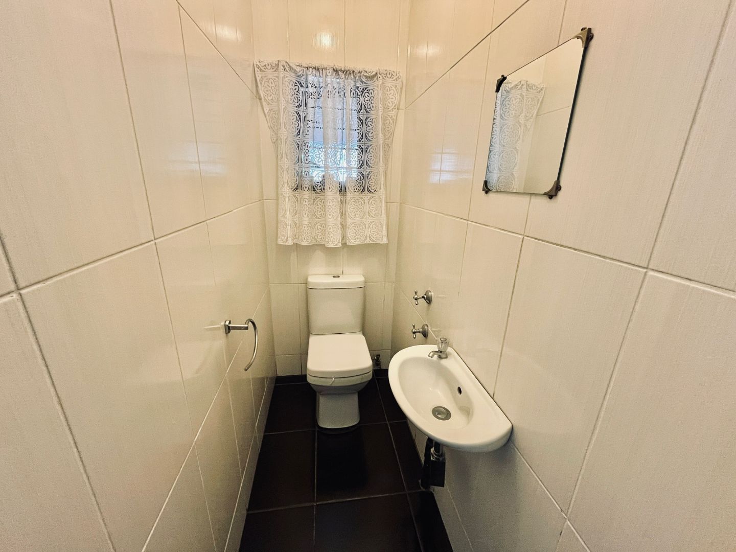 At the back of the house, you will find a spacious entertainment area with a large marbelite swimming pool fitted with an automatic cleaner. There is also a patio with a built-in braai, perfect for hosting family and friends. On the south side of the house, a long covered porch runs the full length of the home. It is enclosed with canvas that can be closed during colder weather. The porch has tiled floors and a large built-in flower box.