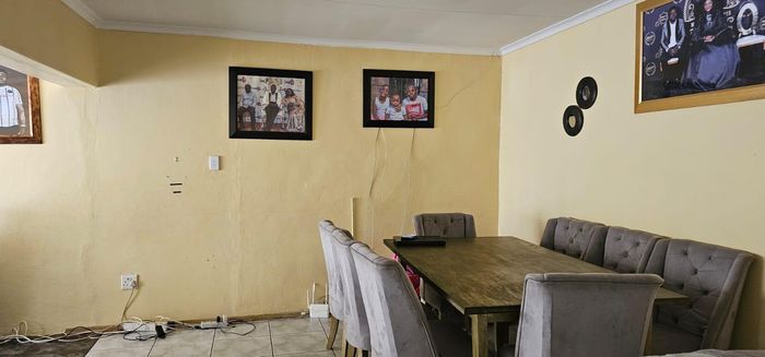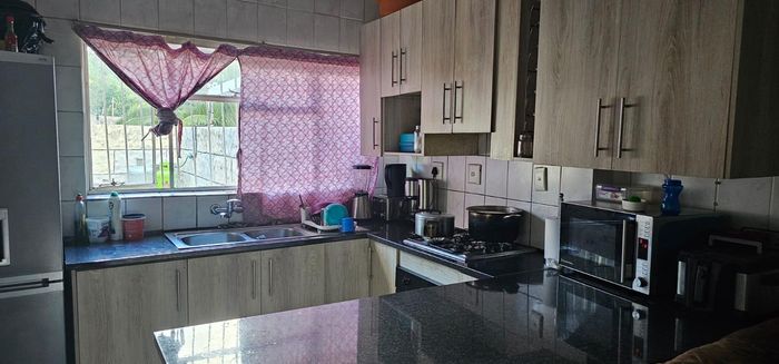A large, tiled lounge welcomes you into the home and flows seamlessly into a closed entertainment area, complete with a built-in braai—perfect for hosting family and friends. The open-plan dining room features tiled floors and connects effortlessly to the kitchen.