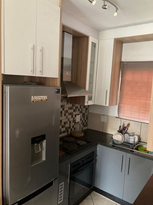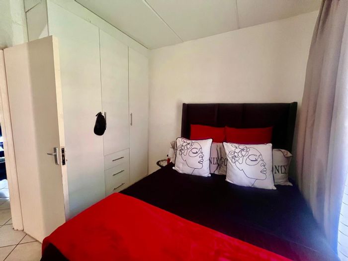 Family-friendly ground unit near East Rand Mall and Witdeep Primary School, offering open-plan lounge with modern kitchen and on-site playground. Two bedrooms, one bathroom, covered/open parking.