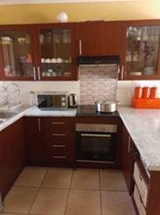 Family-focused double-storey cluster in a peaceful neighborhood, offering flexible living and entertaining, chef's granite kitchen, separate flatlet with private entrance, three bedrooms, two bathrooms, double garage.