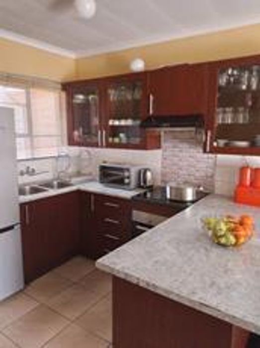 Perfect for family gatherings, this secure, semi-enclosed home in a quiet neighbourhood offers an outdoor entertaining oasis with lapa, braai and pool — plus a modern kitchen.