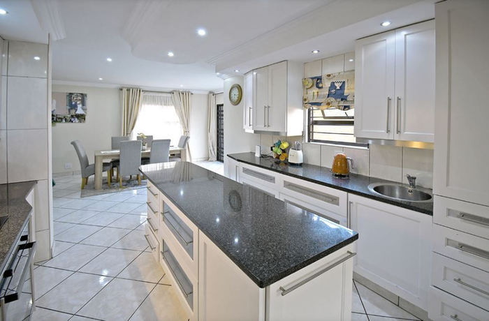 Family-focused double-storey cluster in a peaceful neighborhood, offering flexible living and entertaining, chef's granite kitchen, separate flatlet with private entrance, three bedrooms, two bathrooms, double garage.