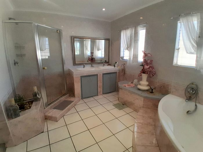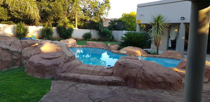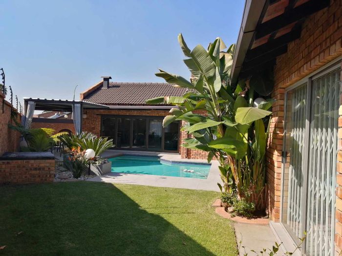 Entertainer's cluster in Villa Luciana — upmarket, 24-hour estate near shops and hospital. Covered Eva-Last deck with built-in braai, pool, double-volume entrance; 4 beds, 3 baths, double garage.