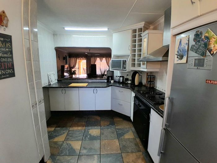 Relaxed family living in a quiet gated neighbourhood with secure entry, open-plan living and private garden with boma and covered braai patio. Four bedrooms, two baths, double garage.