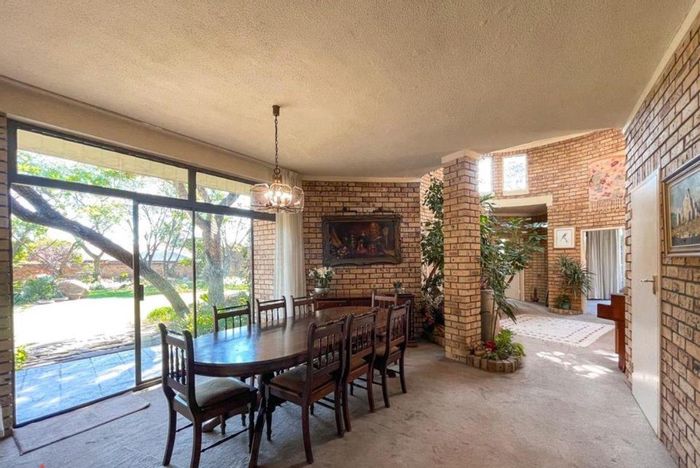 Charming home with facebrick walls, open-plan living, pool, spacious bedrooms, entertainment room, double garage, and staff quarters on large corner lot.