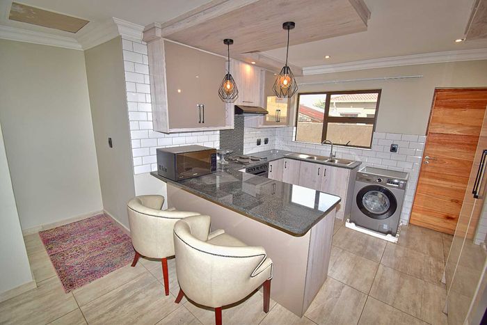 Enjoy lock-and-go living in a secure complex with 24-hour security; open-plan lounge and dining flow to a sleek granite kitchen, three bedrooms, two bathrooms, and double automated garage.