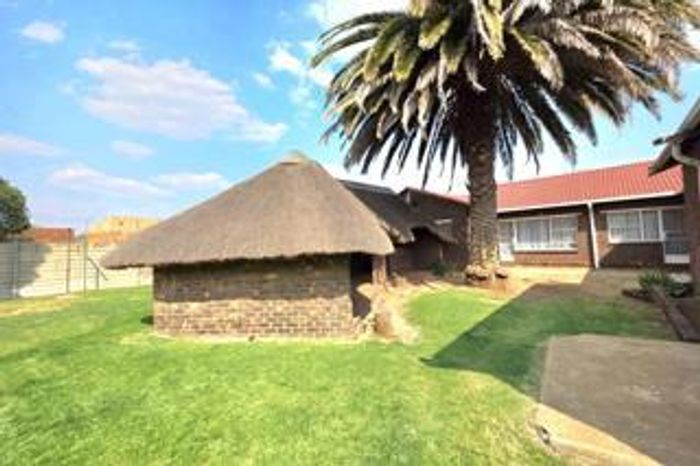 Family-focused living steps from Elspark High School, with expansive front and back gardens and a thatched-roof lapa for entertaining; three bedrooms, two bathrooms, single garage.
