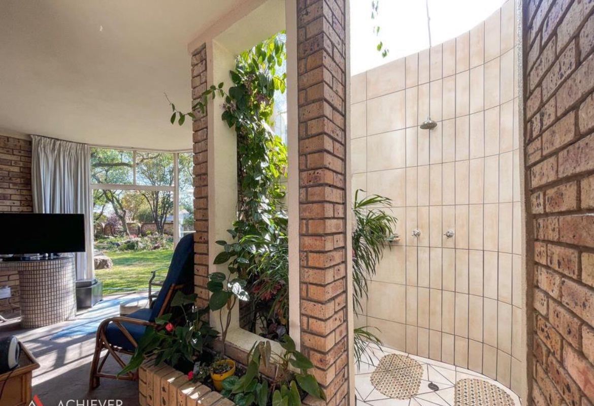 The kitchen boasts a breakfast counter, eye-level oven, and gas hob for all your culinary needs. Four spacious bedrooms await, each with ample built-in cupboards. The main bedroom includes an en-suite bathroom with a sun roof shower.