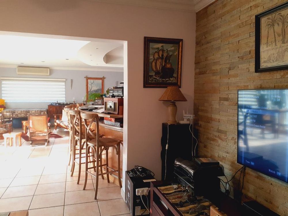 The home boasts a large, tiled open-plan dining room, perfect for hosting family dinners and gatherings. Adjacent is a very spacious family room with a built-in bar, complete with bar chairs that will remain with the property. This room also features a 6-seater jacuzzi, air conditioning, and stacker doors that open to stunning outdoor gardens with beautiful water features. Enjoy the tranquility of the covered patio, perfect for relaxing and entertaining.