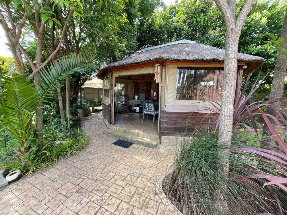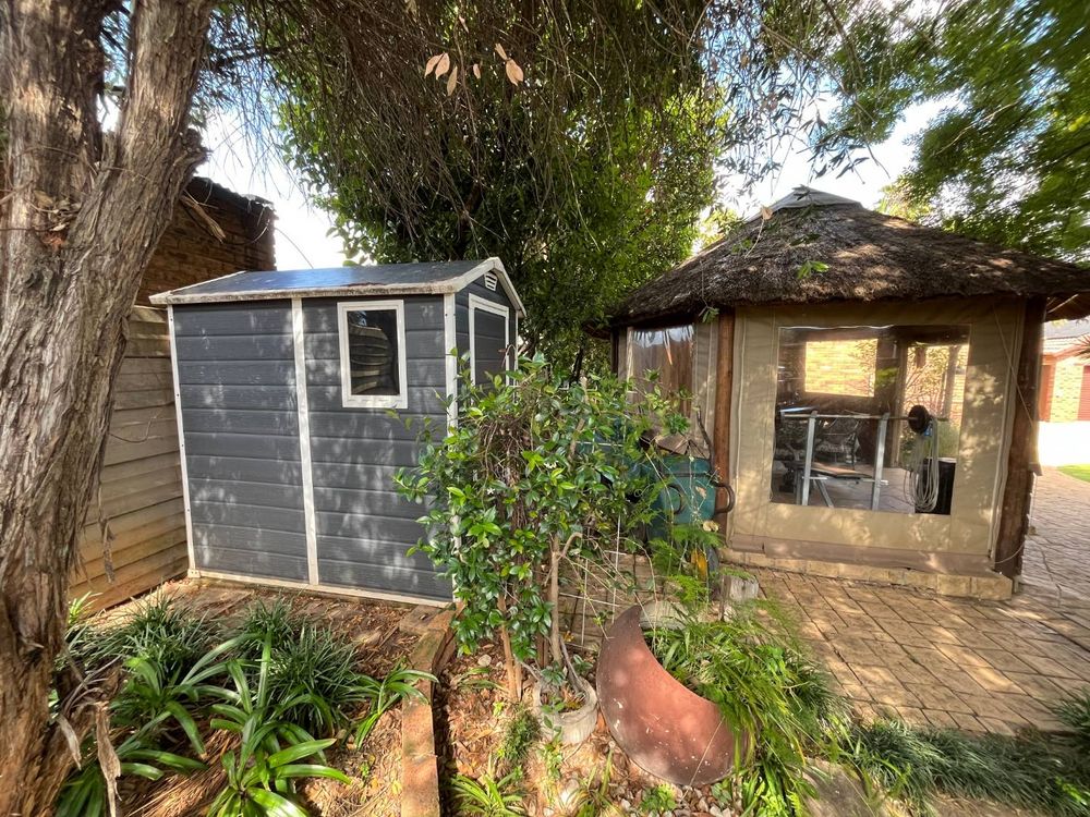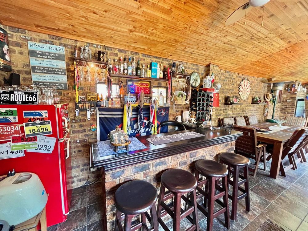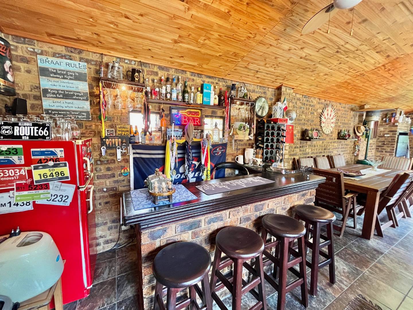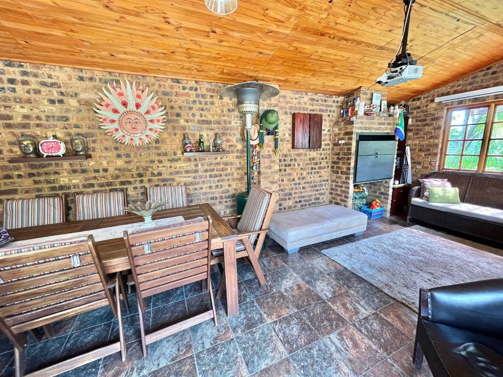 Step into the expansive entertainment area, a true highlight of the property. Accommodating a bar, an 8-seater table, and an indoor braai, this north-facing space is perfect for hosting gatherings or enjoying quiet evenings. The area opens seamlessly onto a solar-heated splash pool through elegant wooden sliding doors, creating an inviting atmosphere. Equipped with a projector for movie nights and tiled flooring for easy maintenance, this entertainment hub is separate from the main house, ensuring privacy. Adjacent to it is a versatile Lapa with a thatch roof and canvas closures, ideal for use as a gym or secondary entertainment area.