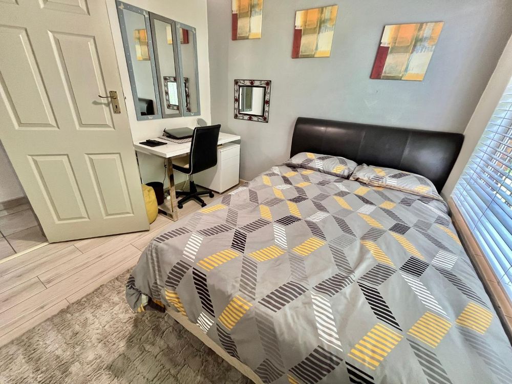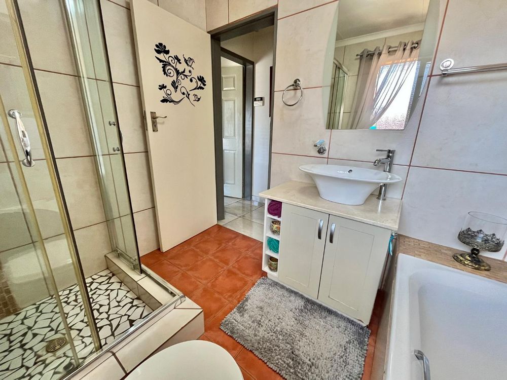 The beautifully landscaped level garden provides a serene outdoor space, while the property’s security features include solar lights, an alarm system with armed response, burglar bars, CCTV, electrical fence, and security doors for your peace of mind.