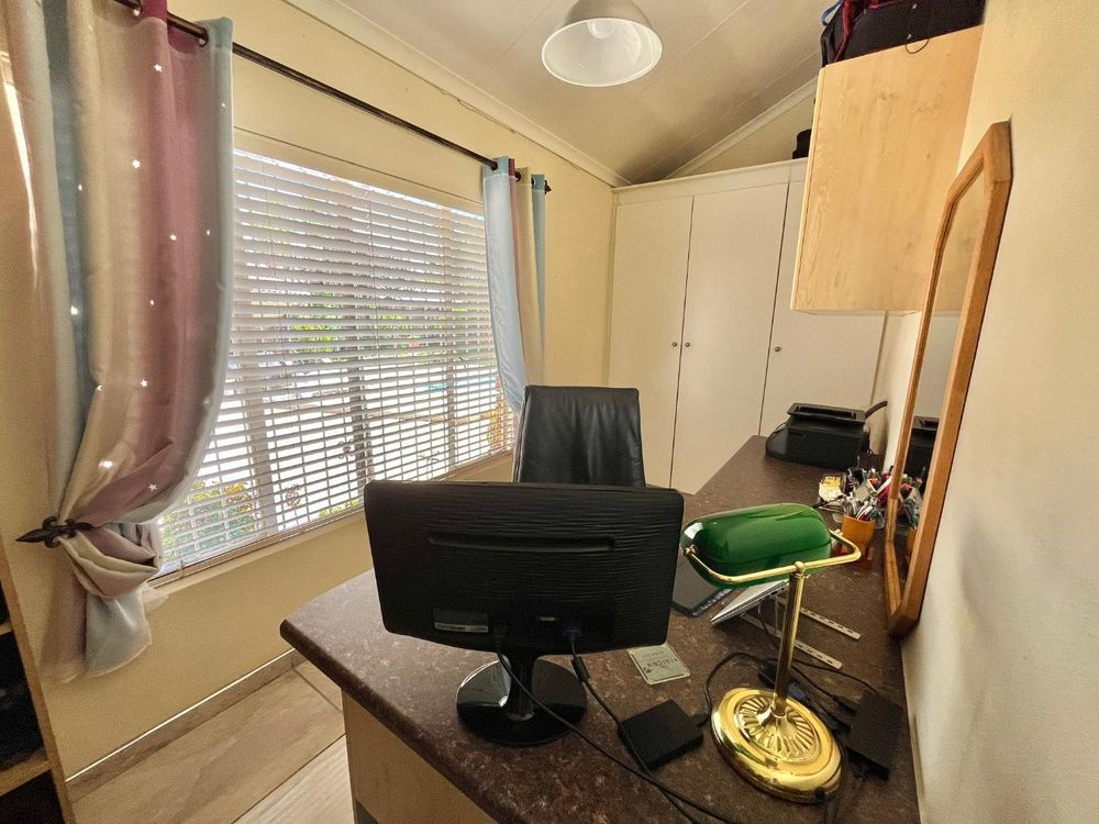 Currently featuring two bedrooms and one bathroom, the house comes with approved building plans for a large main bedroom and an en-suite bathroom, allowing for future expansion. A study with built-in cupboards offers versatility as a nursery or home office.