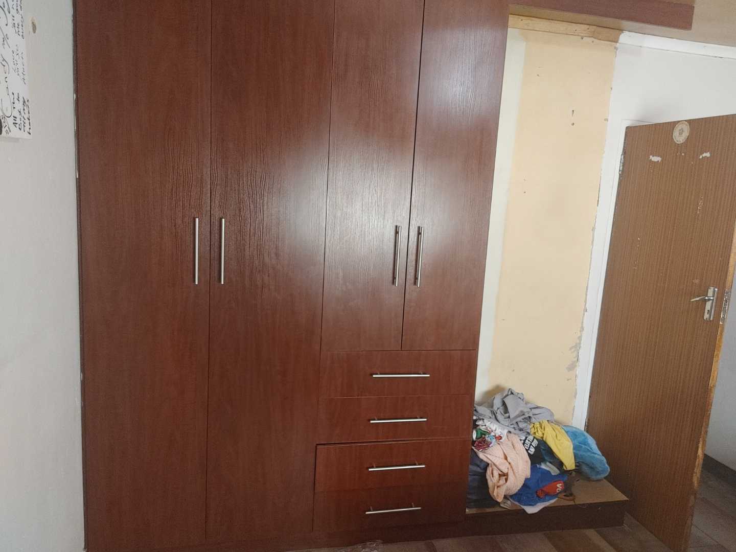 The heart of the home is the well-equipped kitchen, which boasts fully fitted BIC with melamine tops. Cooking is a delight with the four-plate stove, under-counter oven, and extractor fan. The kitchen's tiled floor and walls reaching up to the ceiling make cleaning a breeze, while the single basin sink adds to the space's practicality.