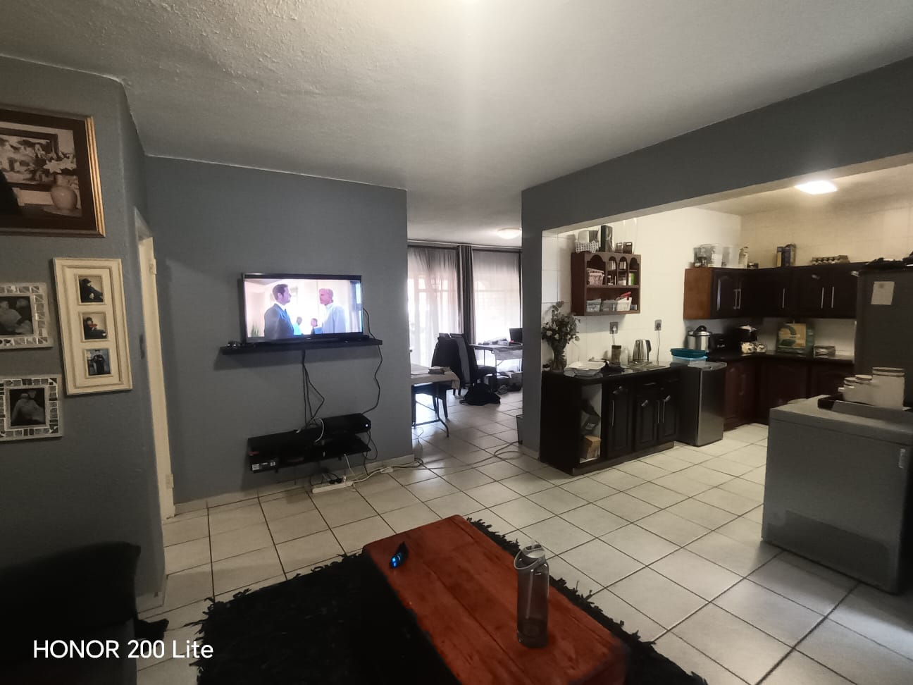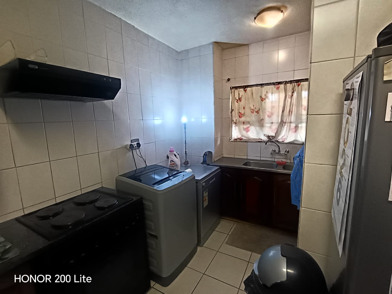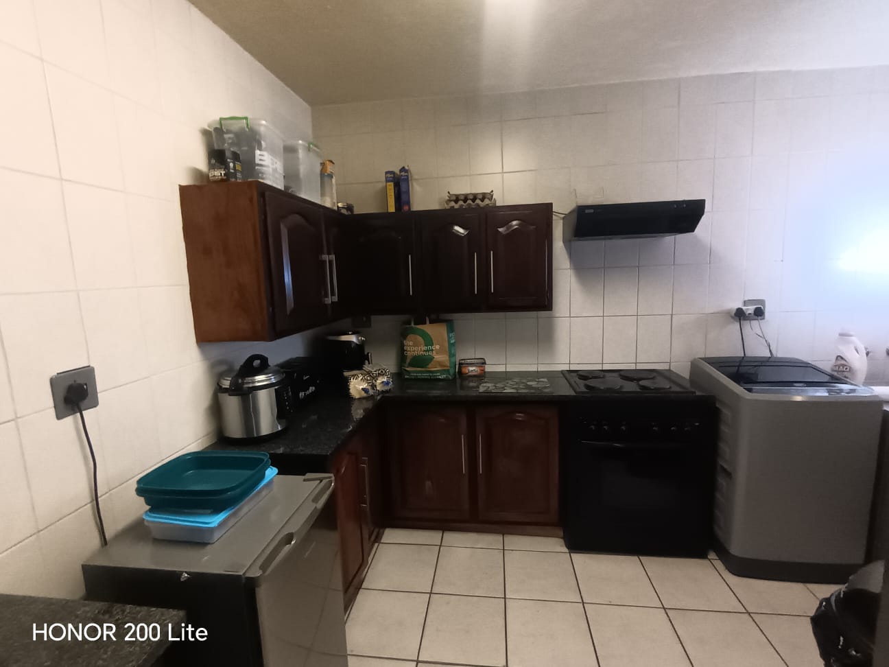 The heart of the home is the well-appointed kitchen, featuring solid wood cabinets that provide ample storage and a dedicated space for laundry and scullery tasks. The kitchen seamlessly flows into a welcoming lounge area, creating an open and inviting space for relaxation and entertainment.